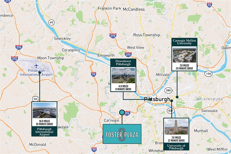 CBRE, as exclusive agent for the Owner, is pleased to present the opportunity to acquire Foster Plaza 8 (the “Property”) located at 730 Holiday Drive in the Parkway West submarket of Pittsburgh, PA. Foster Plaza 8 is a 131,945 SF, six-story office building and is currently 71.8% leased.