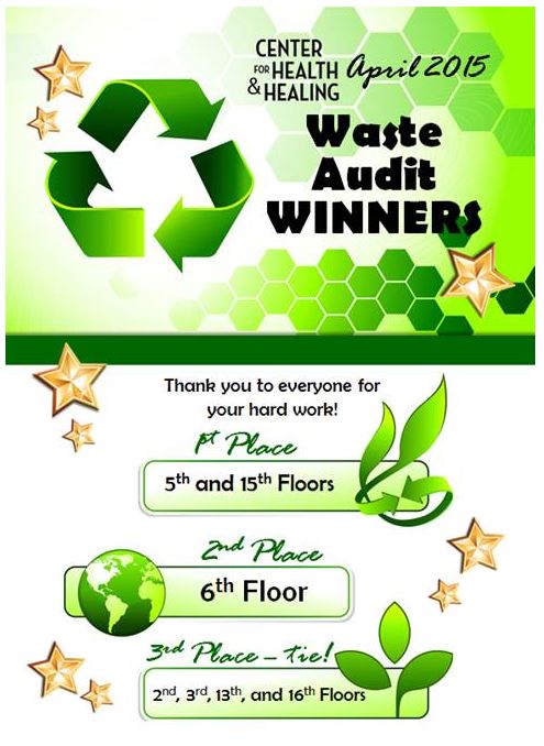 Waste Management A fully comprehensive recycling program was implemented upon occupancy of the building through collaboration with the City of Portland’s Bureau of Planning & Sustainability. The program includes recycling for paper, plastic, tin, aluminum, glass, cardboard, light bulbs, batteries and composting. But, how do you ensure that you are achieving an effective waste management program within a very busy patient care environment? Simple, create a competition and promote the benefits and results to enhance buy-in and a high level of engagement.