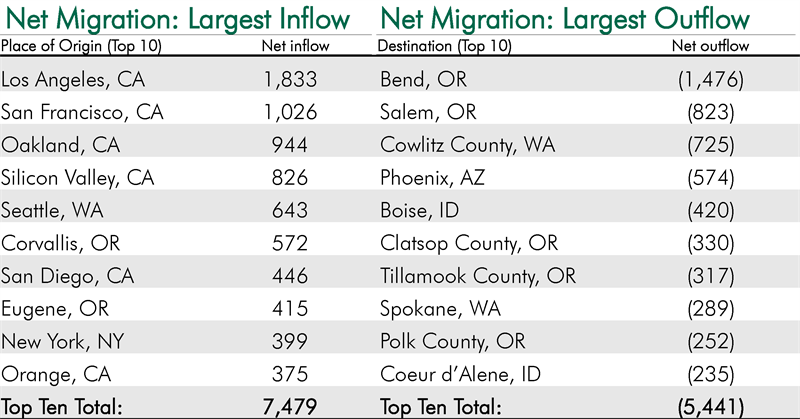 2020 Portland Migration: Largest Net Inflow and Outflow