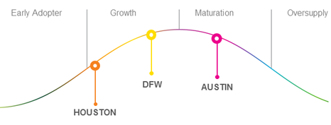 • The shared workspace concept continues to grow rapidly across the plains of Texas. While the major co-working markets within the state are at varying stages of maturation, demand is the one thing they all have in common.